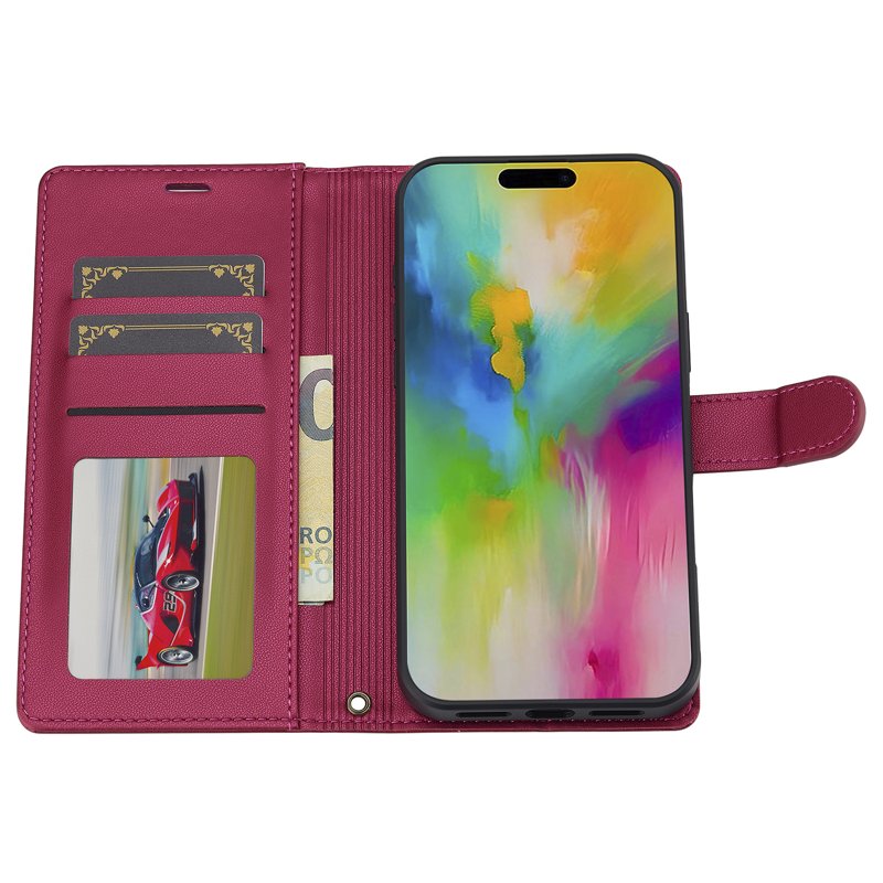 Upptäck LC.IMEEKE L2 Series iPhone 16 Plus Fodral i röd PU-läder. Detta fodral kombinerar stil och funktionalitet. Med högkvalitativa material och smart design skyddar det din telefon samtidigt som det erbjuder praktiska lösningar för din vardag.