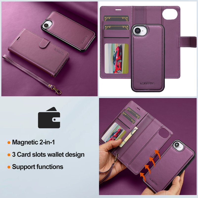 Upptäck LC.IMEEKE L2 Series iPhone 16e Fodral i lila. Detta fodral kombinerar stil och funktionalitet. Tillverkat av högkvalitativt PU-läder och TPU, erbjuder det både lyxig känsla och robust skydd. Med smarta funktioner som en inbyggd plånbok och avtagbar design, är detta fodral perfekt för den moderna användaren.