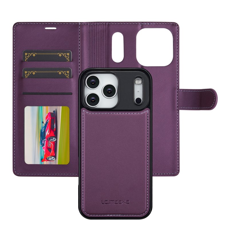 Upptäck LC.IMEEKE L2 Series fodral för iPhone 17 Pro Max. Detta eleganta fodral i lila PU-läder kombinerar stil med funktionalitet. Med flera smarta funktioner skyddar det din telefon samtidigt som det erbjuder praktiska lösningar för din vardag.