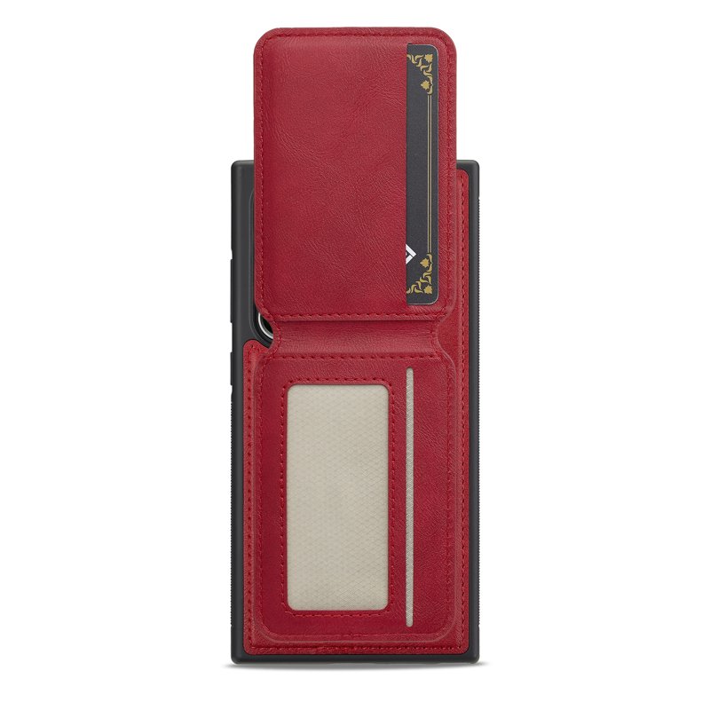 - Magnetisk avtagbar design: Starka magneter fäster plånboken på fodralet. Lätt att ta bort för separat användning.
