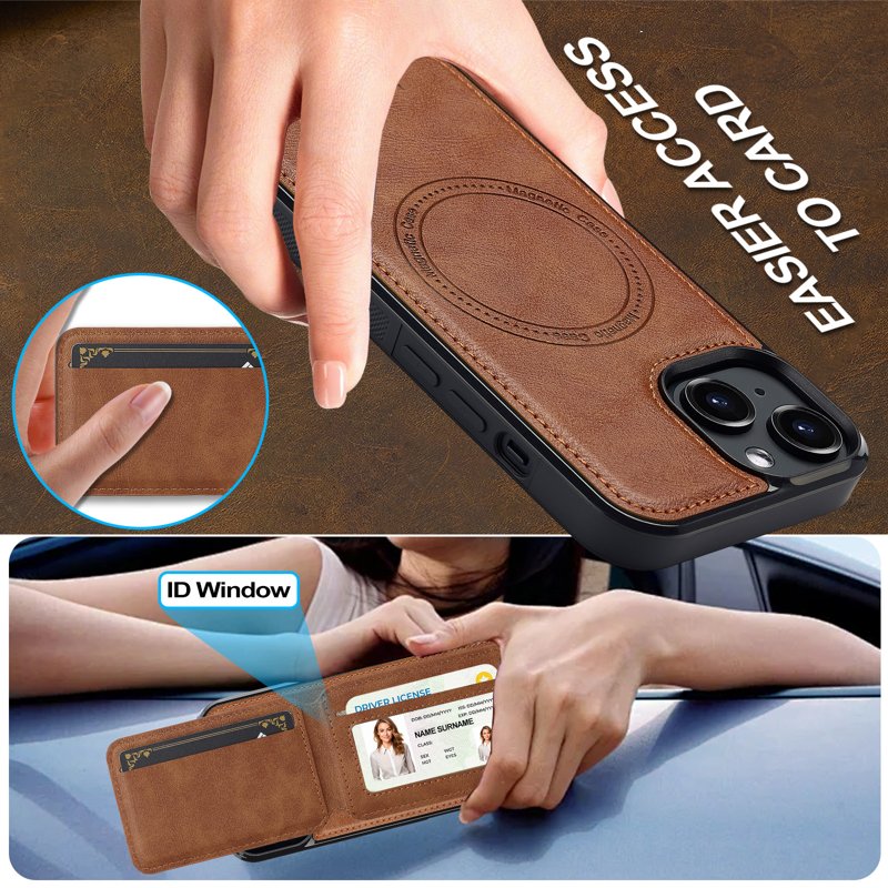 - Magnetisk avtagbar design - Starka magneter fäster plånboken på fodralet, vilket gör det enkelt att ta bort den vid behov.