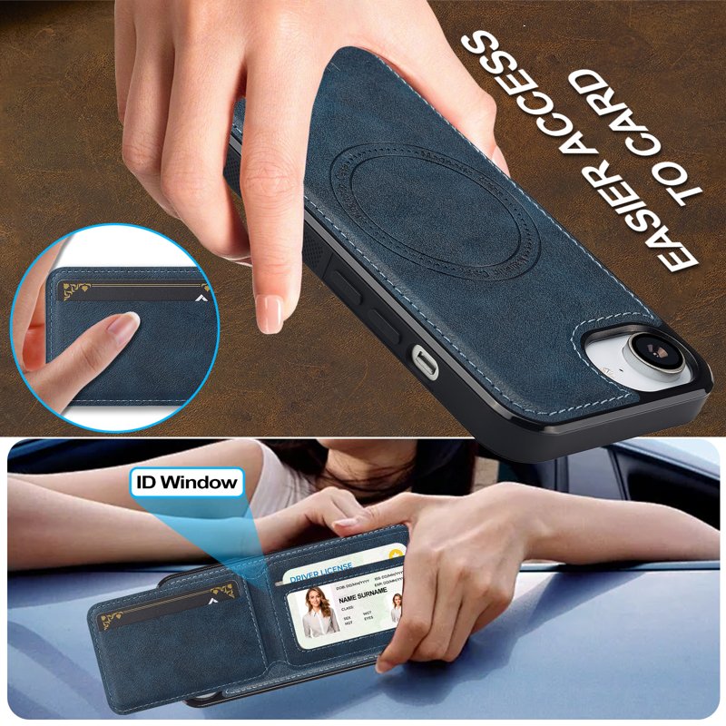 • Magnetisk avtagbar design - Starka magneter fäster plånboken säkert på fodralet, vilket möjliggör enkel avtagning för separat användning.