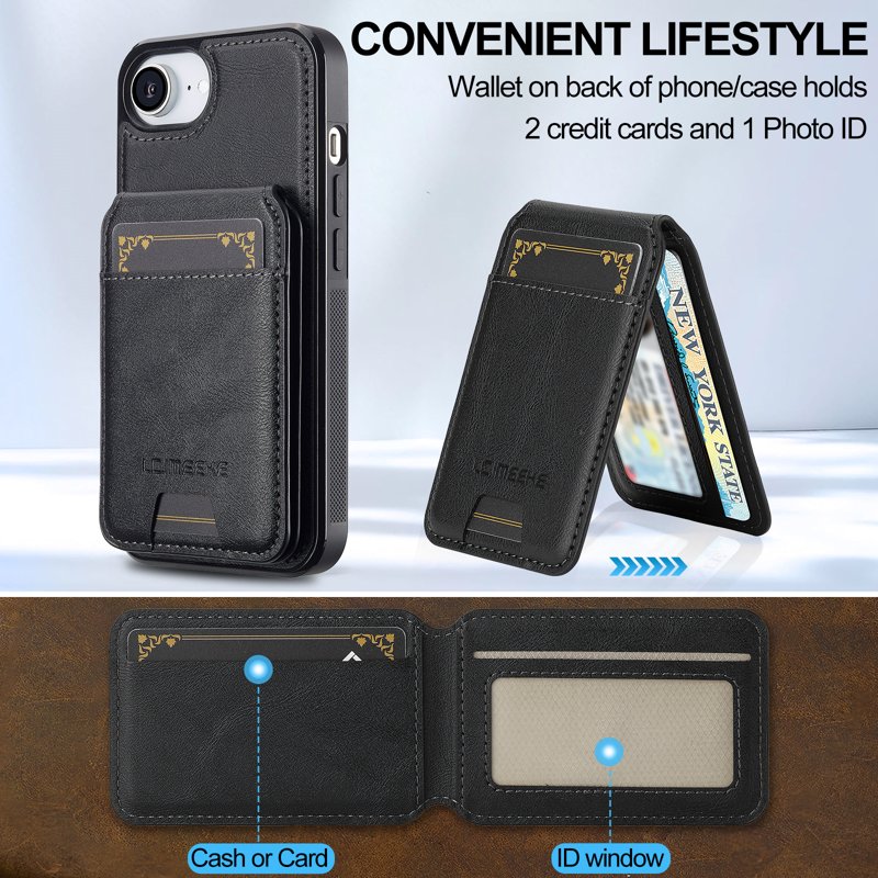 LC.IMEEKE L3 iPhone 16e Fodral Magnetiskt Äkta läder - Svart