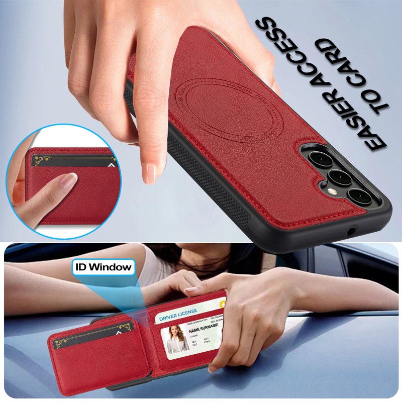 • Magnetisk avtagbar design: Starka magneter fäster plånboken på fodralet för enkel avtagning vid behov.