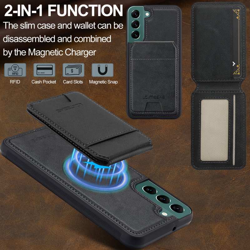 Upptäck LC.IMEEKE L3 fodralet för Samsung Galaxy S22 5G. Detta eleganta fodral i äkta läder erbjuder både stil och funktionalitet. Med smarta funktioner som magnetisk avtagbar design och RFID-skydd, är det den perfekta lösningen för att skydda din telefon och dina kort.