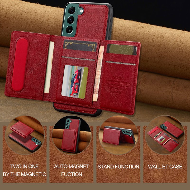 Upptäck LC.IMEEKE L5 fodralet för Samsung Galaxy S22 5G. Detta eleganta och funktionella fodral kombinerar ett skyddande mobilskal med en praktisk plånbok. Tillverkat av äkta läder, erbjuder det både stil och hållbarhet. Med smarta funktioner som magnetisk avtagbar design och RFID-skydd, är detta fodral det perfekta valet för den moderna användaren.
