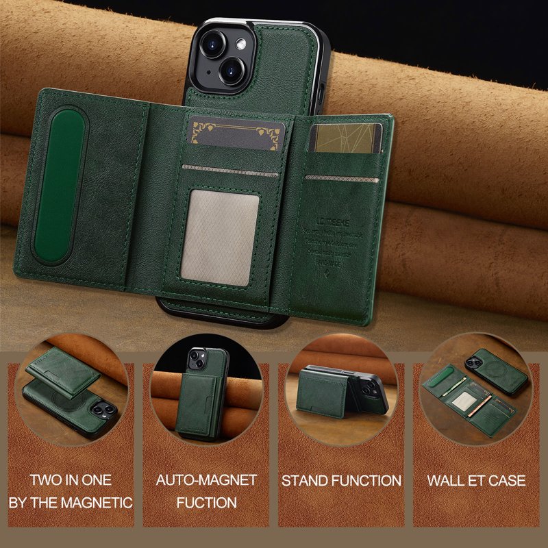Upplev det perfekta fodralet för din iPhone 14 med LC.IMEEKE L5. Detta fodral i äkta läder kombinerar stil och funktionalitet. Med en 2-i-1 design får du både ett skyddande fodral och en praktisk plånbok. Idealisk för den moderna användaren som värdesätter både säkerhet och bekvämlighet.