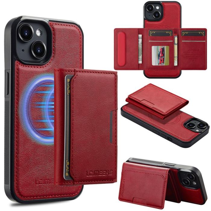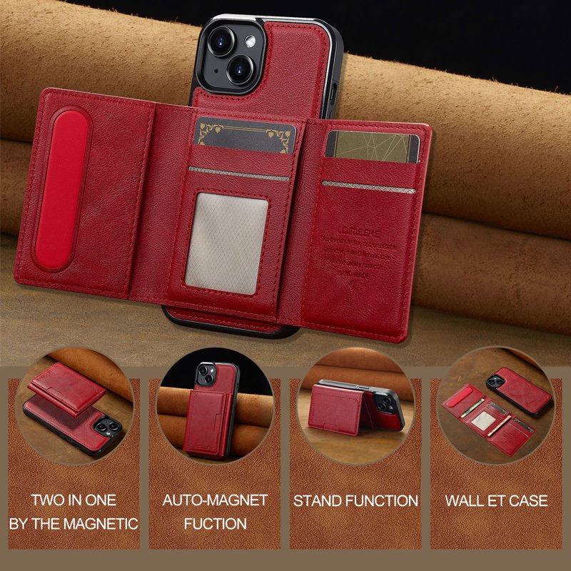 LC.IMEEKE L5 iPhone 14 Fodral Äkta läder - Röd