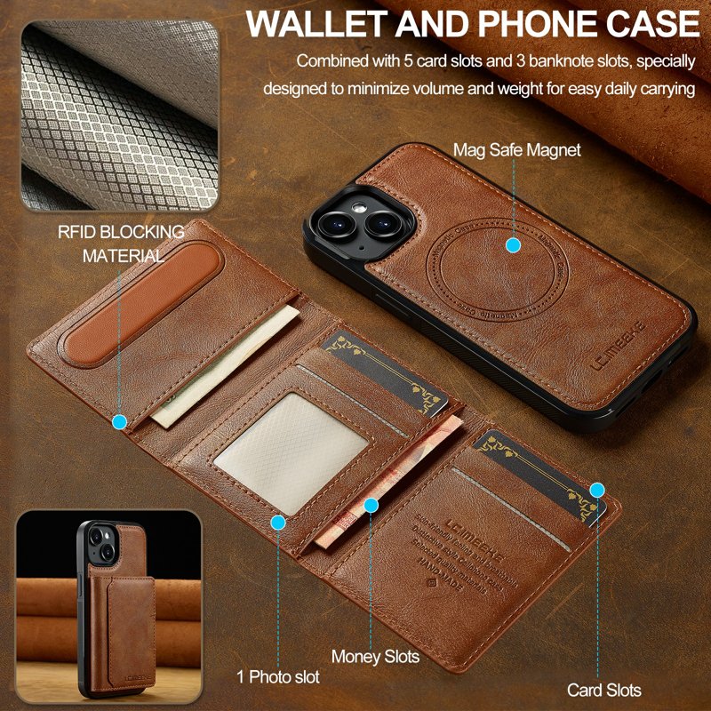 Upptäck LC.IMEEKE L5 fodral för iPhone 15 Plus. Detta eleganta fodral i äkta läder kombinerar stil och funktionalitet. Med sin 2-i-1 design fungerar det både som ett fodral och en plånbok. Perfekt för den moderna användaren som vill ha allt i ett.