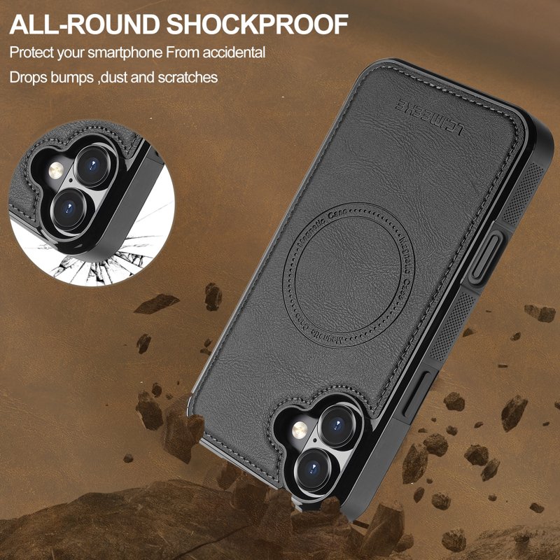 LC.IMEEKE L5 iPhone 16 Fodral Äkta läder - Svart