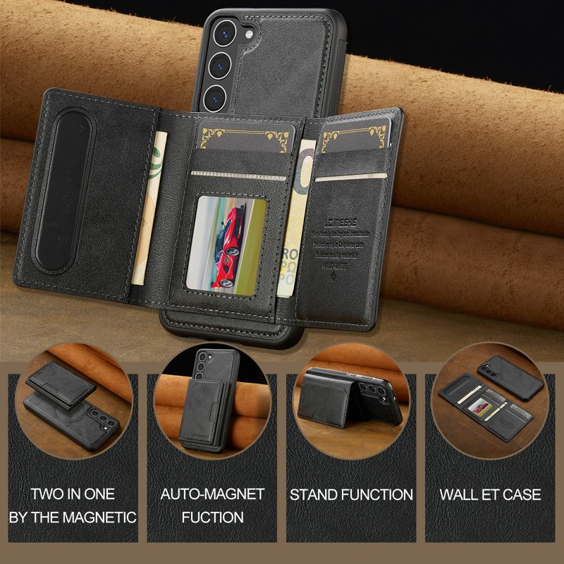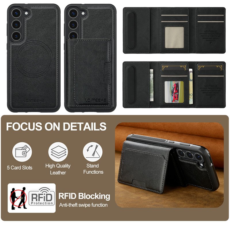 Upptäck LC.IMEEKE L5 fodral för Samsung Galaxy S23. Detta fodral i äkta läder kombinerar stil och funktionalitet. Med en smart 2-i-1 design får du både ett skyddande fodral och en praktisk plånbok. Perfekt för den moderna användaren som värdesätter både säkerhet och bekvämlighet.
