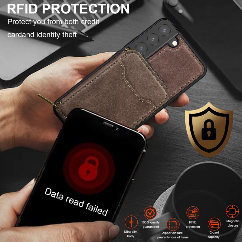 • Rymlig dragkedjeficka - Utrustad med en säker dragkedjeficka som rymmer över 10 kort, kontanter, mynt och små nycklar. En praktisk allt-i-ett-lösning.
