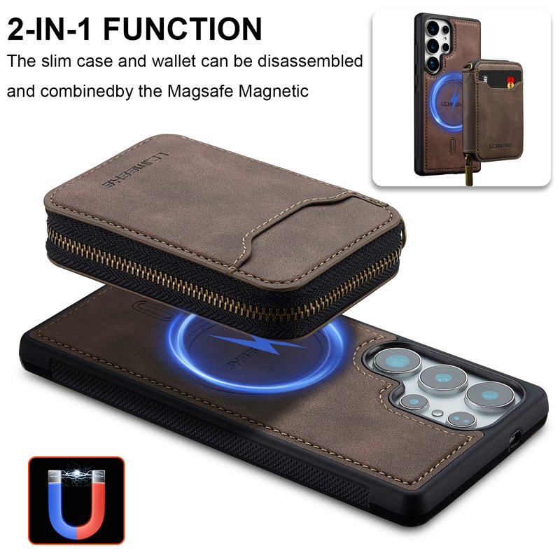 Upptäck LC.IMEEKE L6 fodralet för Samsung Galaxy S23 Ultra i kaffe. Detta fodral kombinerar stil och funktionalitet. Med en avtagbar plånbok och ett slimmat skydd erbjuder det en praktisk lösning för att hålla dina värdesaker organiserade och skyddade. Perfekt för den moderna användaren.