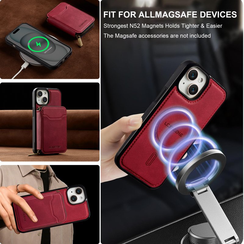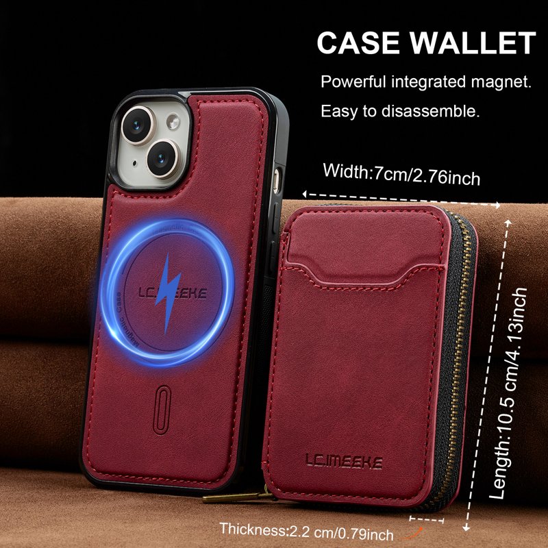 Upptäck LC.IMEEKE L6 iPhone 15 Fodral Magnetiskt i röd äkta läder. Detta fodral kombinerar stil och funktionalitet. Med en avtagbar plånbok och ett slimmat skydd erbjuder det en praktisk lösning för din iPhone 15. Perfekt för den moderna användaren som värdesätter både säkerhet och design.