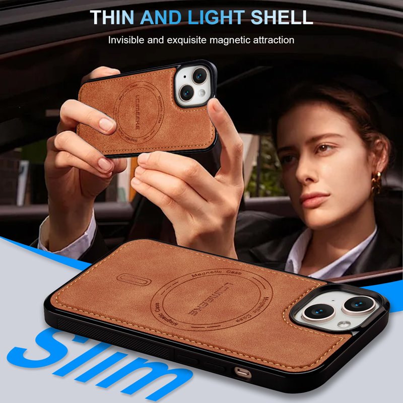 LC.IMEEKE L6 iPhone 15 Fodral PU Läder - Brun