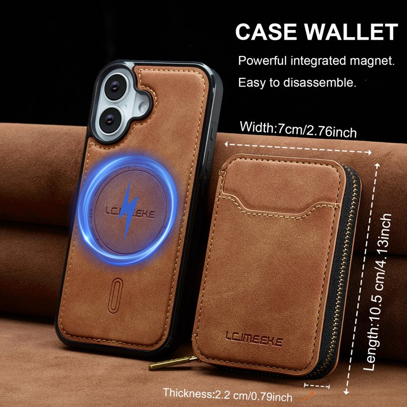 Upptäck LC.IMEEKE L6 iPhone 16 Plus Fodral i äkta läder. Detta bruna fodral kombinerar stil och funktionalitet. Med sin avtagbara design och praktiska förvaringslösningar är det det perfekta valet för den moderna användaren. Skydda din telefon samtidigt som du har allt du behöver nära till hands.