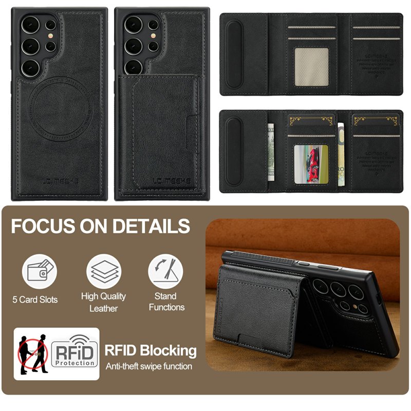 LC.IMEEKE L5 är det perfekta valet för din Samsung Galaxy S26 Ultra. Denna magnetiska telefonfodral med läderbaksida och avtagbar korthållare erbjuder både stil och funktionalitet. Med en smart 2-i-1-design får du en praktisk lösning för att skydda din telefon och förvara dina kort på ett säkert sätt.