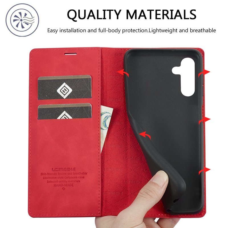 LC.IMEEKEs plånboksfodral för Samsung Galaxy S26 Plus är den perfekta lösningen för dig som vill kombinera stil med funktionalitet. Detta fodral i microfiberläder erbjuder skydd och bekvämlighet i ett. Med plats för kort och sedlar är det idealiskt för den som är på språng.