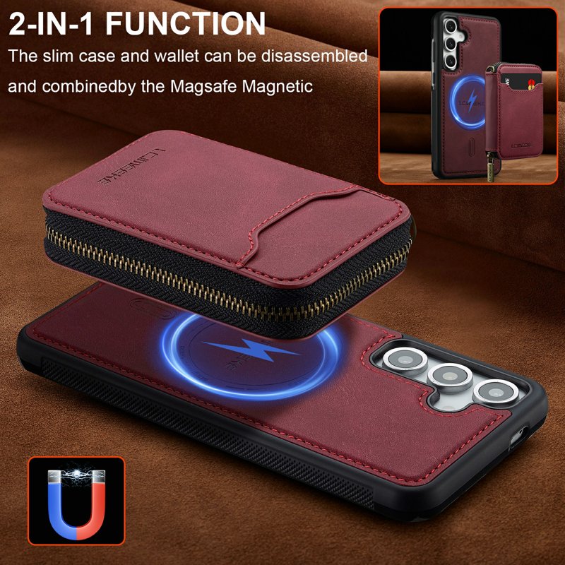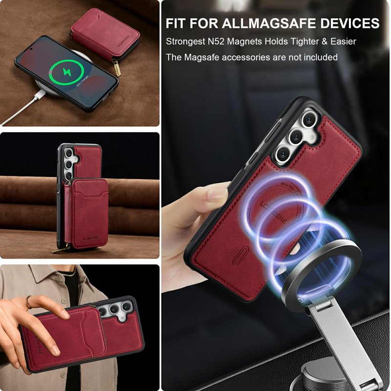 LC.IMEEKE Plånboksfodral för Samsung Galaxy S26 Plus Magnetiskt PC + TPU - Röd