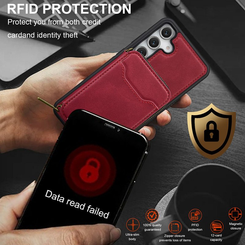 Inkluderar: 1 x Telefonfodral, 1 x Dragkedjeplånbok