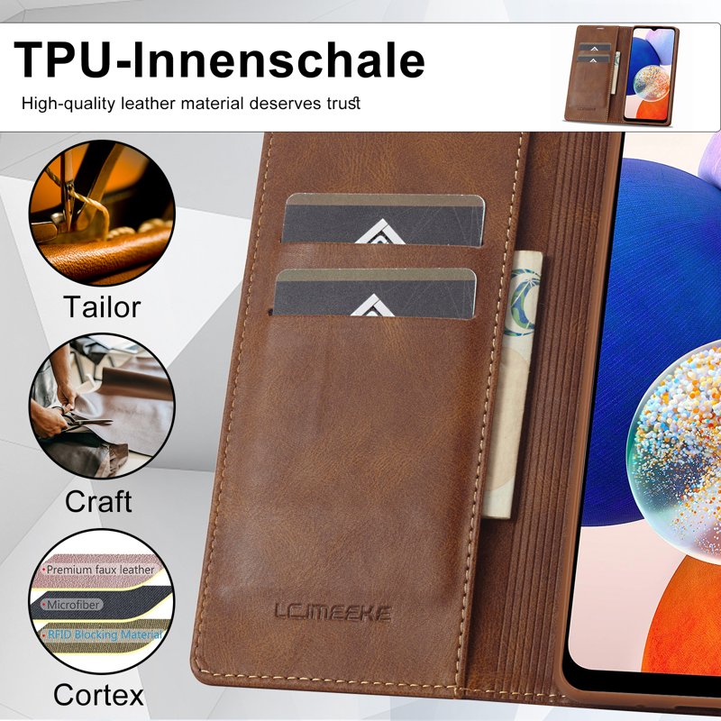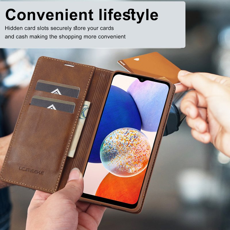 LC.IMEEKE Samsung Galaxy A14 Fodral PU Läder - Brun