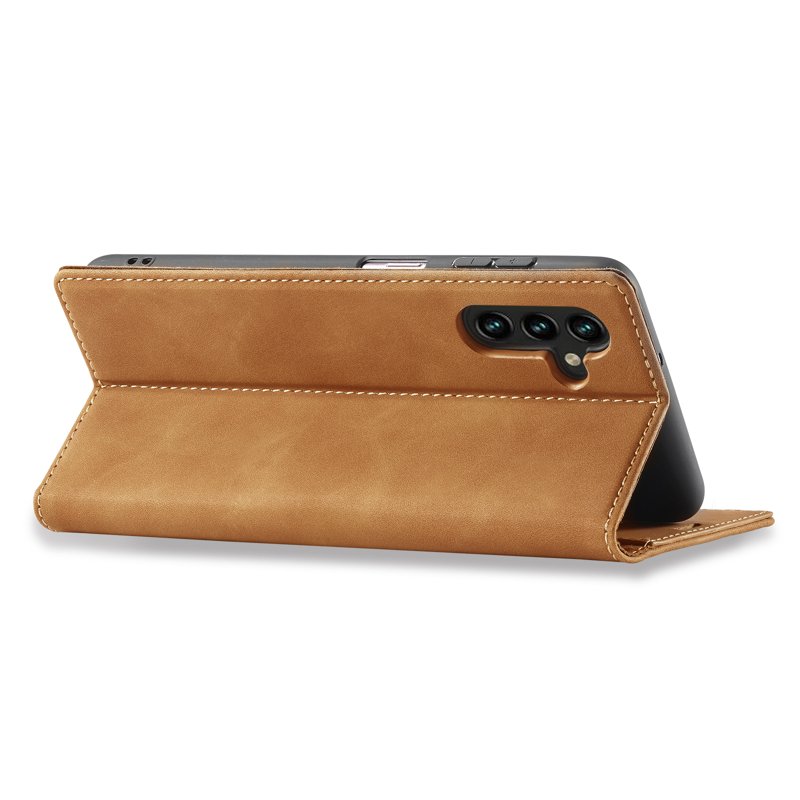 LC.IMEEKE Samsung Galaxy A16 Fodral TPU+PU Flip i brun är den perfekta lösningen för att skydda din telefon samtidigt som du har dina viktigaste kort nära till hands. Detta fodral kombinerar stil och funktionalitet med högkvalitativt material och smart design. Med plats för bankkort och sedlar är det idealiskt för den som är på språng.