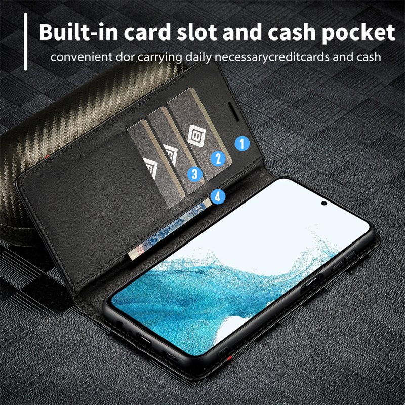 • Säker Magnetisk Stängning: Med en stark magnet säkerställs att din telefon, pengar och kort förvaras säkert.