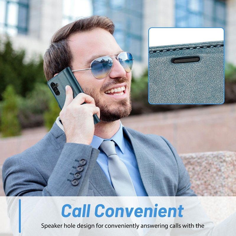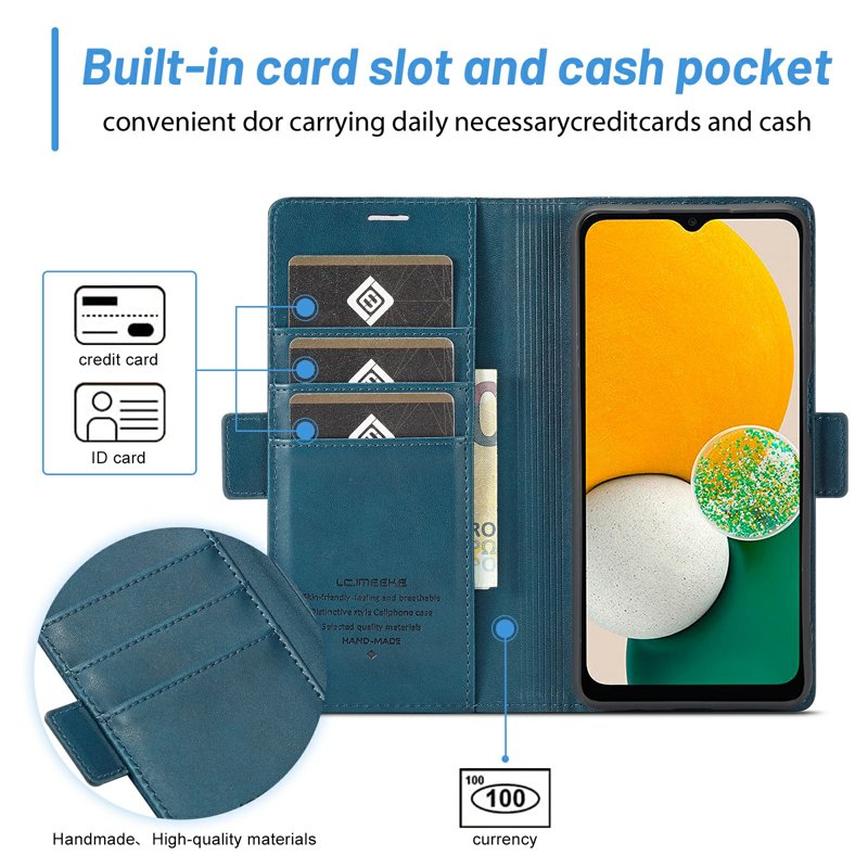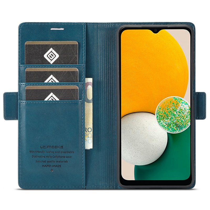 Upptäck LC.IMEEKE Samsung Galaxy A55 5G fodralet i blått. Detta fodral är tillverkat av högkvalitativt PU-läder och TPU, vilket ger långvarigt skydd och stil. Med flera kortfack och en sedelplats är det både praktiskt och elegant. Magnetiska stängningar säkerställer att dina värdesaker hålls säkra.