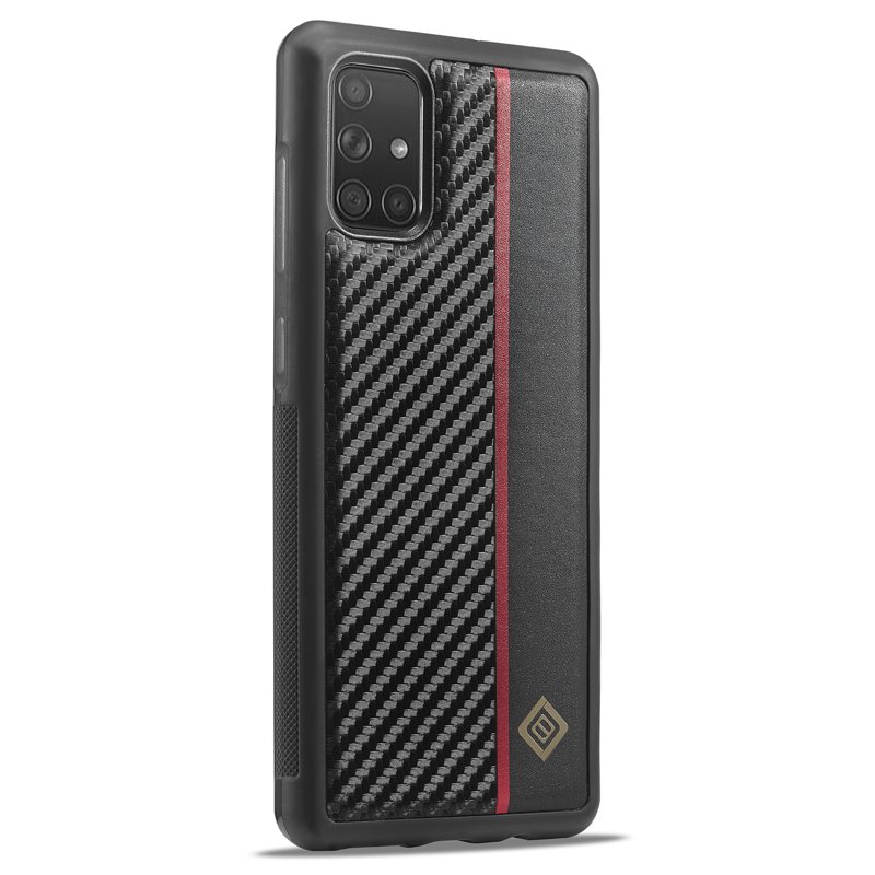- Snygg kolfiber PU-läder - Kombinerar elegant kolfiber PU-läder med en fintexturerad sektion och en iögonfallande röd vertikal rand.