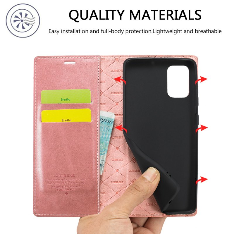 LC.IMEEKE Samsung Galaxy A71 Skal Äkta läder - Rose Gold