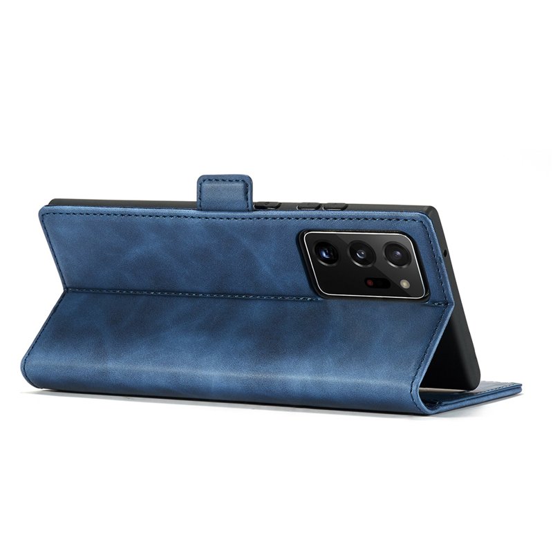 Upptäck LC.IMEEKE Samsung Galaxy Note20 Ultra Skal i äkta läder. Denna stiliga och funktionella plånboksfodral erbjuder skydd och bekvämlighet. Med sin blå färg och smarta design är den perfekt för den moderna användaren. Skydda din telefon samtidigt som du har plats för kort och kontanter.