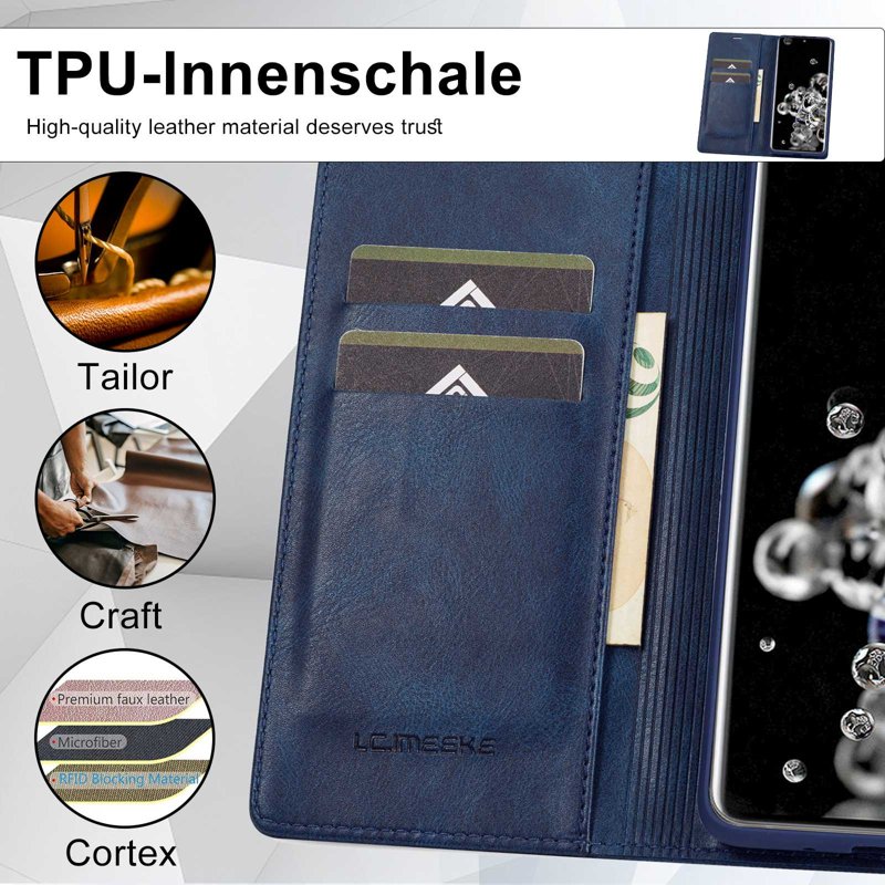 LC.IMEEKE Samsung Galaxy S20 Ultra Fodral i PU läder är den perfekta lösningen för att skydda din telefon. Med ett stilrent och funktionellt design erbjuder detta fodral både säkerhet och bekvämlighet. Det är tillverkat av högkvalitativt PU läder och TPU, vilket gör det slitstarkt och hållbart för långvarig användning.