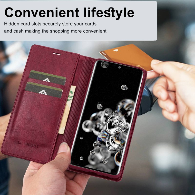 LC.IMEEKE Samsung Galaxy S20 Ultra Fodral i PU läder är den perfekta lösningen för att skydda din telefon. Med ett stilrent och funktionellt design, kombinerar detta fodral plånbok och telefonfodral i ett. Det är både hållbart och praktiskt för dagligt bruk.