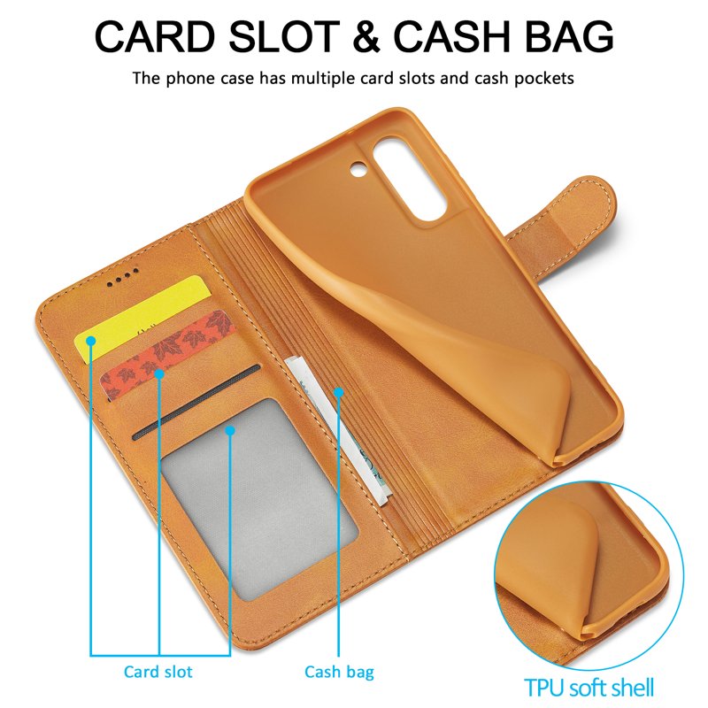 LC.IMEEKE Samsung Galaxy S21 FE Fodral i Äkta läder - Brun