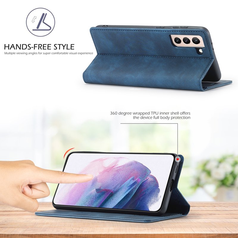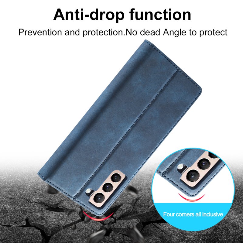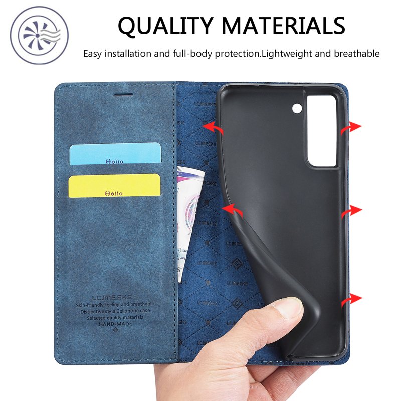 LC.IMEEKE Samsung Galaxy S21 FE Skal i Äkta Läder - Blå