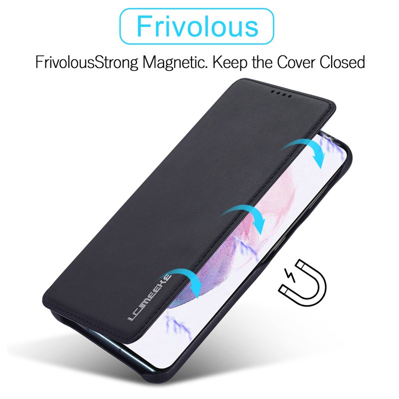 LC.IMEEKE Samsung Galaxy S21 Fodral i Äkta Läder - Svart
