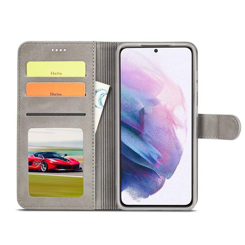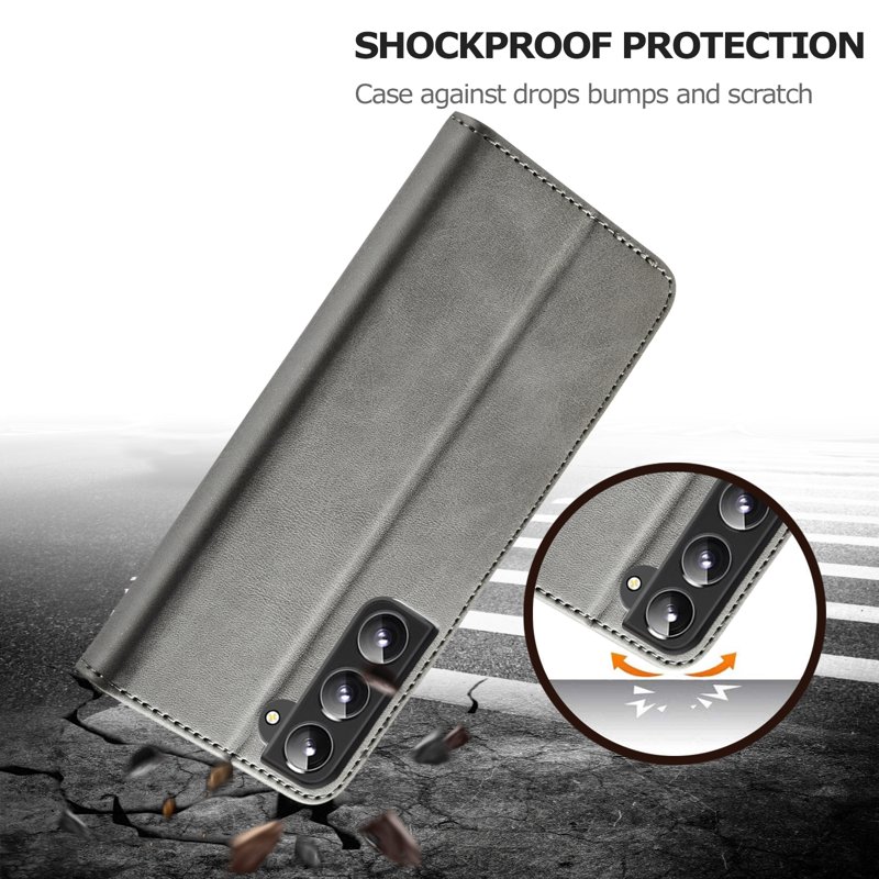 LC.IMEEKE Samsung Galaxy S22 5G Fodral i grått PU-läder erbjuder både stil och skydd. Det är tillverkat av högkvalitativt PU-läder och TPU, vilket gör det slitstarkt och hållbart. Med praktiska kortfack och en säker magnetknäppning skyddar det din telefon och dina värdesaker effektivt.