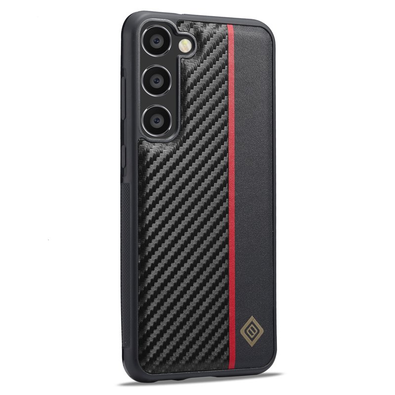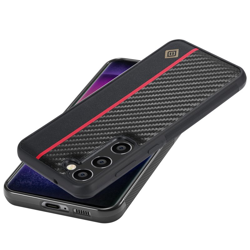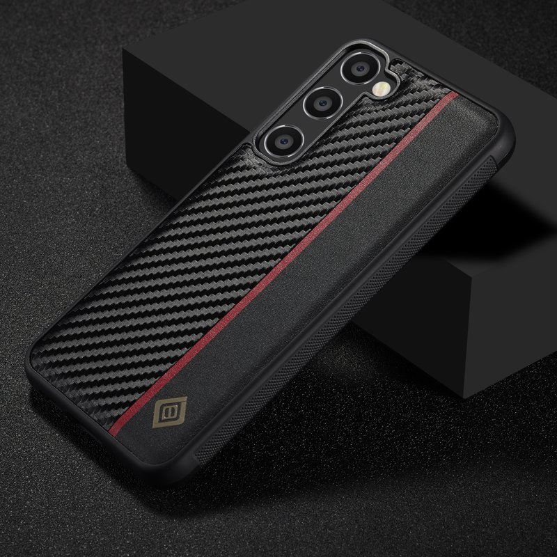 - Modern estetik - Kombinerar kolfiber PU-läder med en elegant röd vertikal rand för en stilren look.