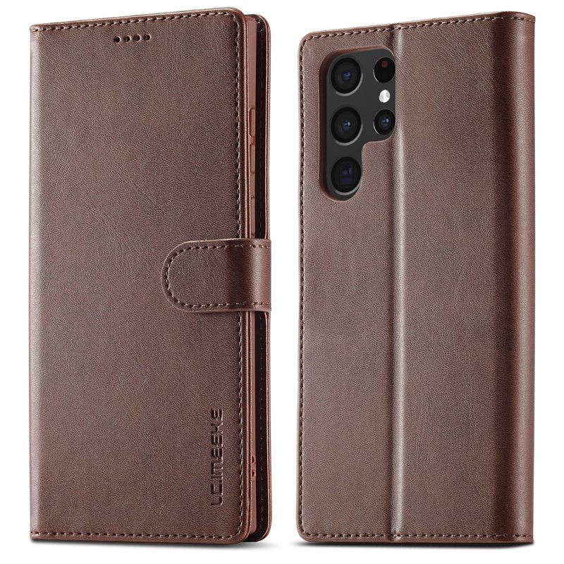 LC.IMEEKE Samsung Galaxy S23 Ultra Fodral PU Läder - Brun