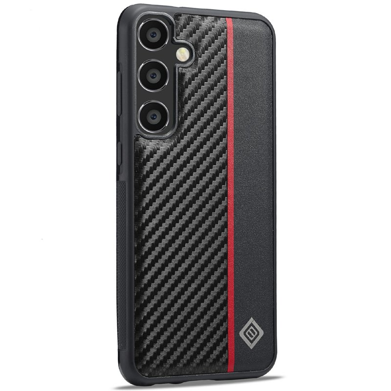 LC.IMEEKE Samsung Galaxy S25 Fodral - Kolfiber Textur Läder - Svart