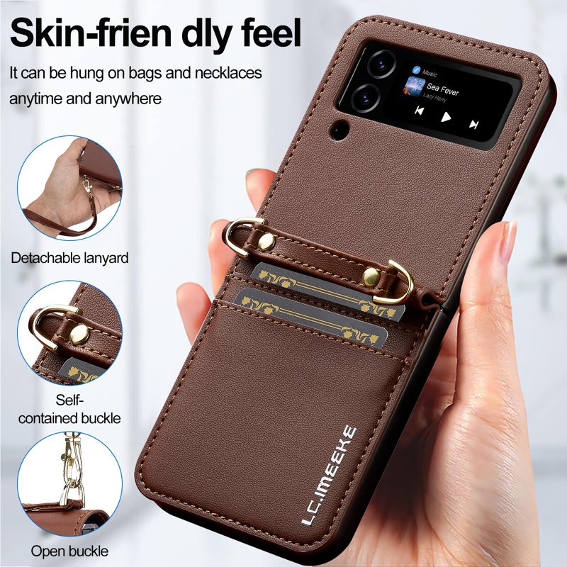 LC.IMEEKE Samsung Galaxy Z Flip4 Fodral Äkta läder - Brun