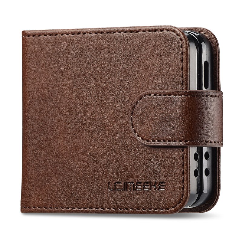 LC.IMEEKE Samsung Galaxy Z Flip7 Fodral i Äkta Läder - Brun