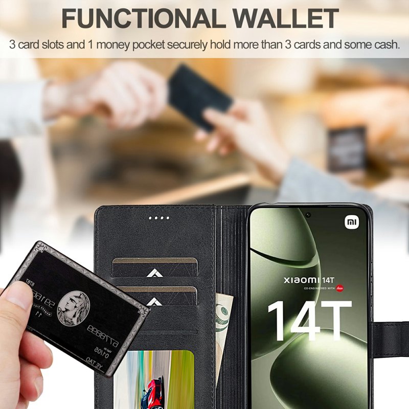 LC.IMEEKE Xiaomi 14T Fodral i Äkta Läder - Svart