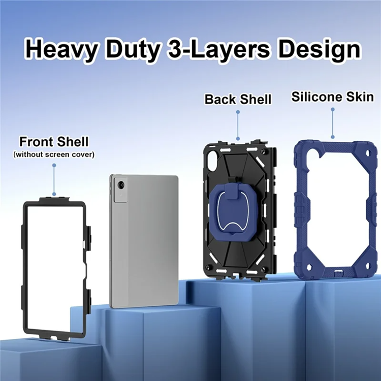 Lenovo M11/Idea Tab Skal Silikon Handtag Kickstand + PC - Marinblå/Svart