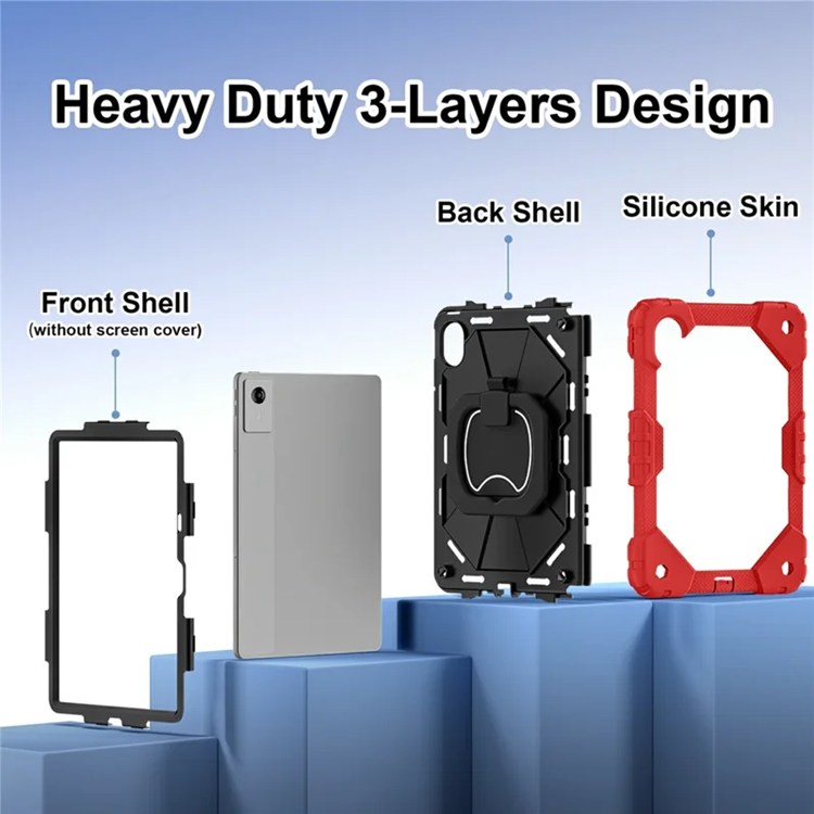 Lenovo M11/Idea Tab Skal Silikon Handtag Kickstand + PC - Röd/Svart