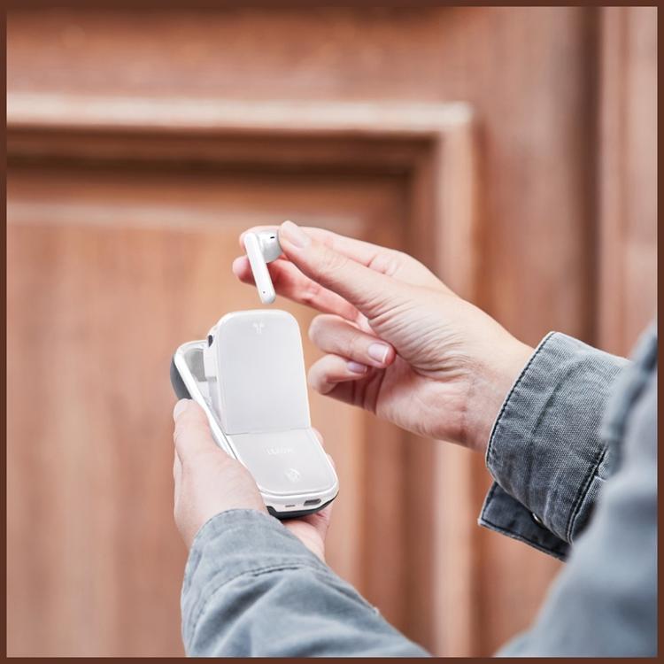 Laddningsetuiet fungerar även som Bluetooth-högtalare. Lyssna privat eller dela musiken med andra – samma enhet, dubbla möjligheter.