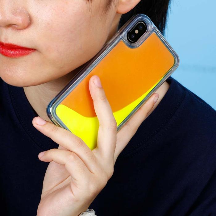 Den senaste designen med flytande sand i neonfärger. Liquid Neon Case är ett slitstarkt TPU-skal. Vänd din iPhone upp och ner, neonsanden rinner runt i skalet som ett vattenfall.