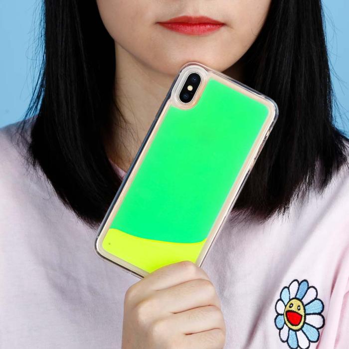 Den senaste designen med flytande sand i neonfärger. Liquid Neon Case är ett slitstarkt TPU-skal. Vänd din iPhone upp och ner, neonsanden rinner runt i skalet som ett vattenfall.