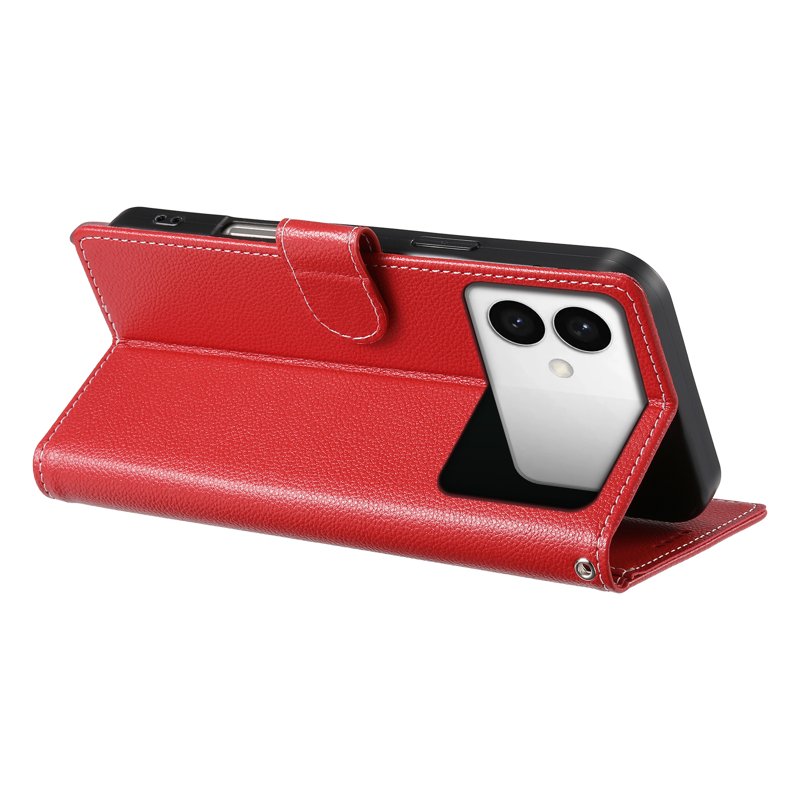 - Praktisk förvaring och stativ - Har dedikerade fack för kreditkort och kontanter samt en vikbar täckning som fungerar som stativ för handsfree-visning.