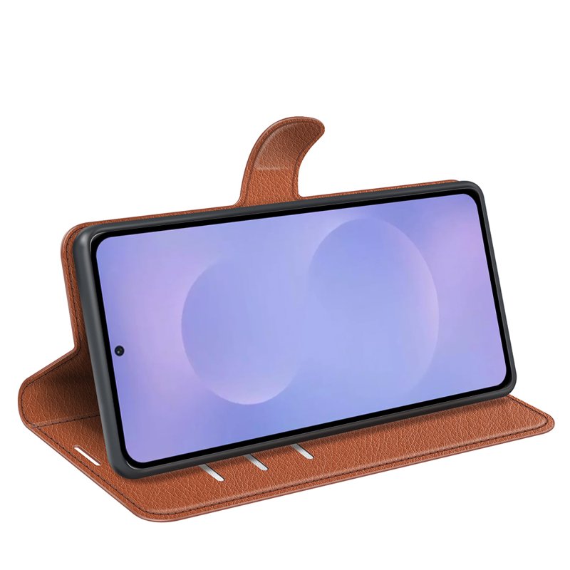 Skydda din Samsung Galaxy S26 med det stiliga Litchi Texture Shockproof Leather Wallet Phone Cover i brunt. Denna plånboksfodral kombinerar funktionalitet och stil. Med högkvalitativt material och smart design får du både skydd och bekvämlighet i ett och samma fodral.